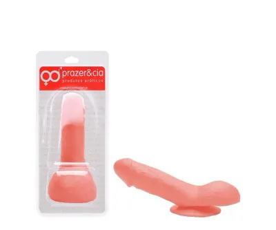 Prótese com escroto e ventosa 11,8x3,6cm Prazer e cia