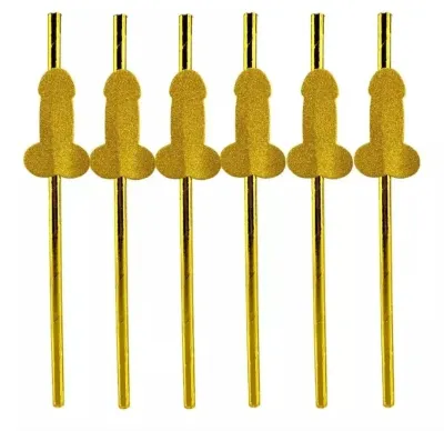 Pacote com 6 canudos eróticos DOURADO (Pênis glitter)