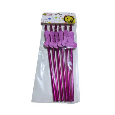 Pacote com 6 canudos eróticos PINK (Pênis glitter)