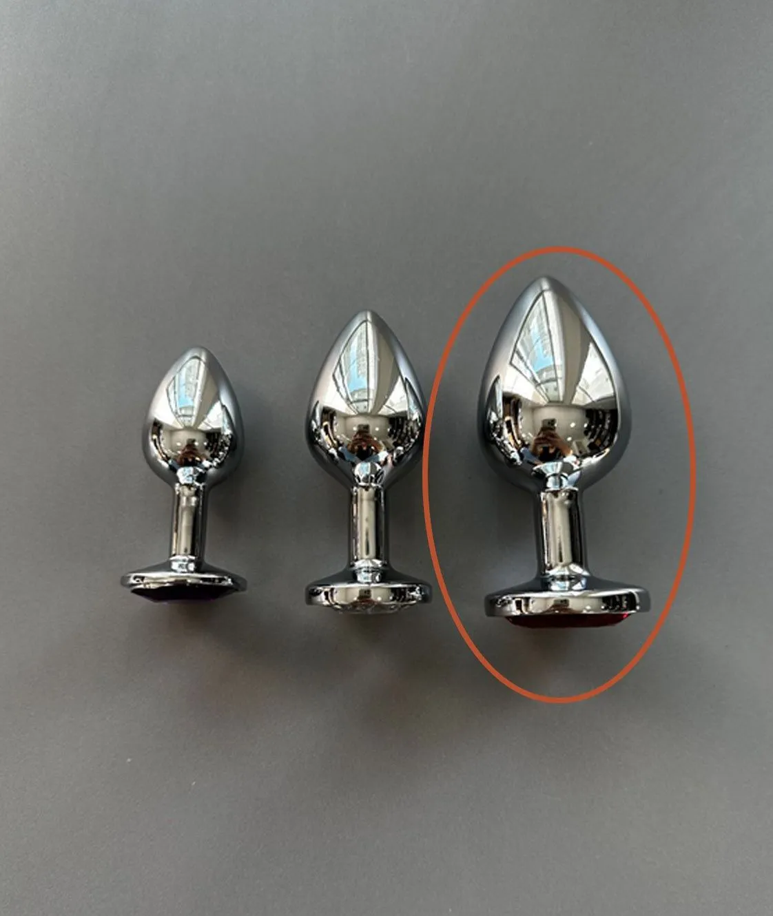 Plug anal de luxo em aço inoxidável possui forma cônica e um detalhe extremamente lindo de pedra lapidada em formato de coração na sua base.