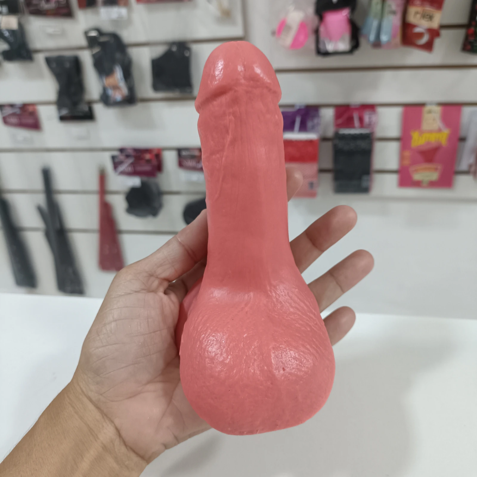 Prótese com escroto e ventosa 11,8x3,6cm Prazer e cia
