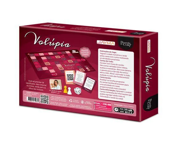 Cartas QR Code: Explore novos sentidos e sensações com cartas que contêm QR codes, levando você a vídeos, aulas e sons que estimulam outros sentidos do corpo, além da visão e do tato.Este é o primeiro jogo de tabuleiro que associa saúde, prazer e relacionamentos em um único lugar, proporcionando uma experiência completa e enriquecedora para o casal.