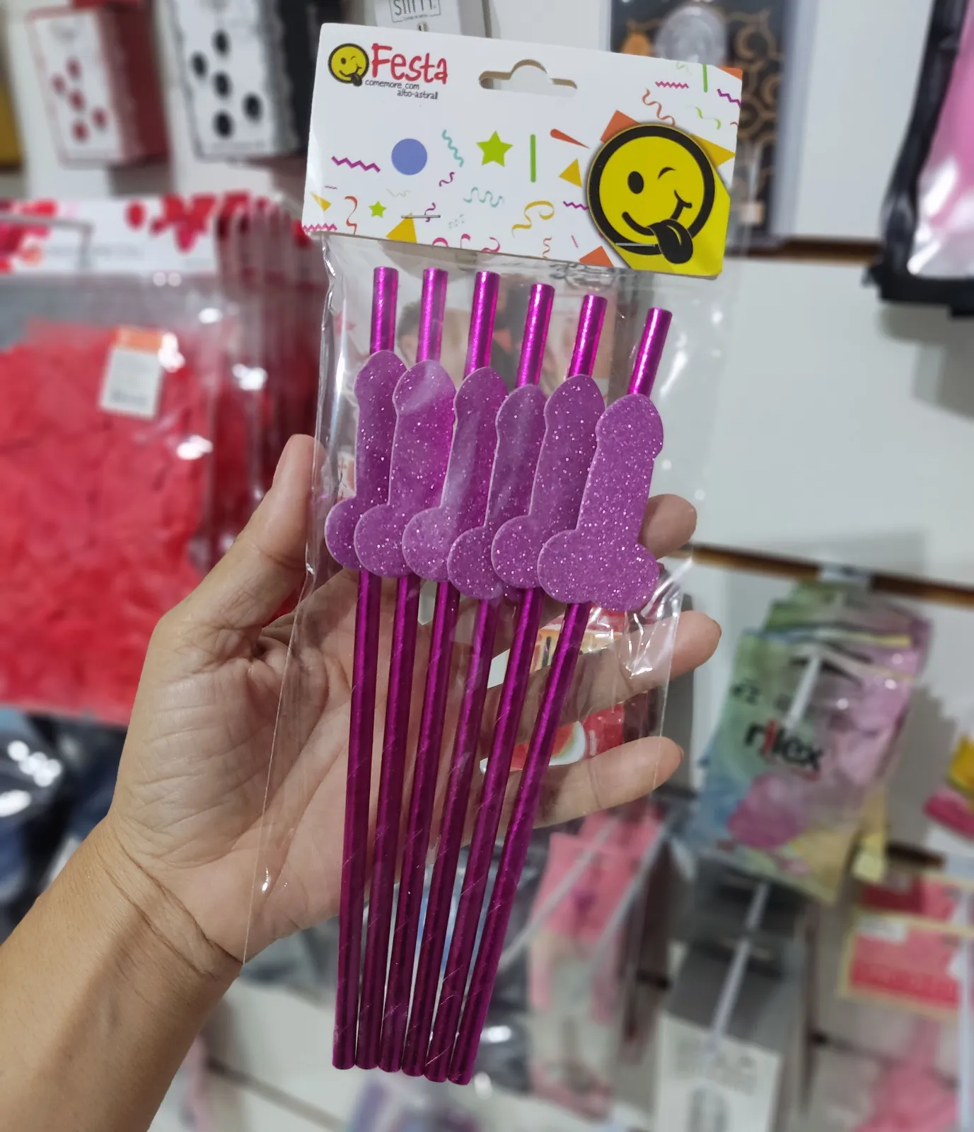 Pacote com 6 canudos eróticos PINK (Pênis glitter)
