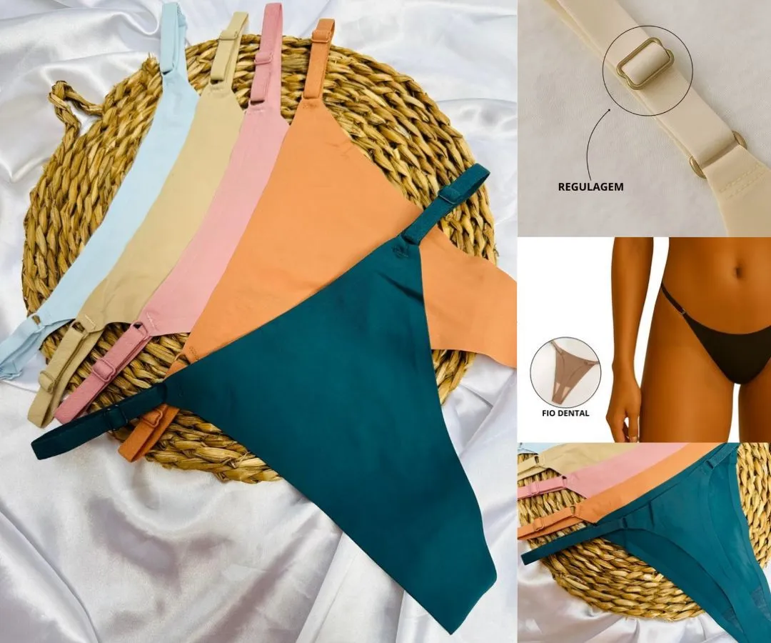 Calcinha Fio Sem Costura Corte Laser com regulagem