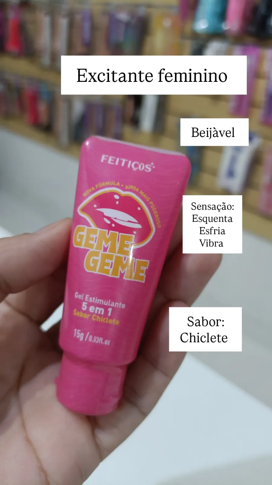 Geme Geme Gel Excitante Feminino 15g - Feitiços. Geme Geme Gel Excitante Feminino (Sabor Chiclete) é projetado para proporcionar uma experiência de prazer intensa e multifacetada. Este gel excitante oferece uma combinação de sensações que vão desde vibrações e pulsações até estímulos, excitações, lubrificações, sensibilidades, refrescâncias e aquecimentos. Com extrato de Jambu em sua formulação, o Geme Geme potencializa a satisfação feminina, deixando-a de pernas bambas!