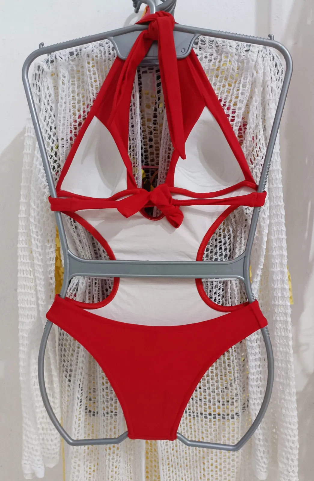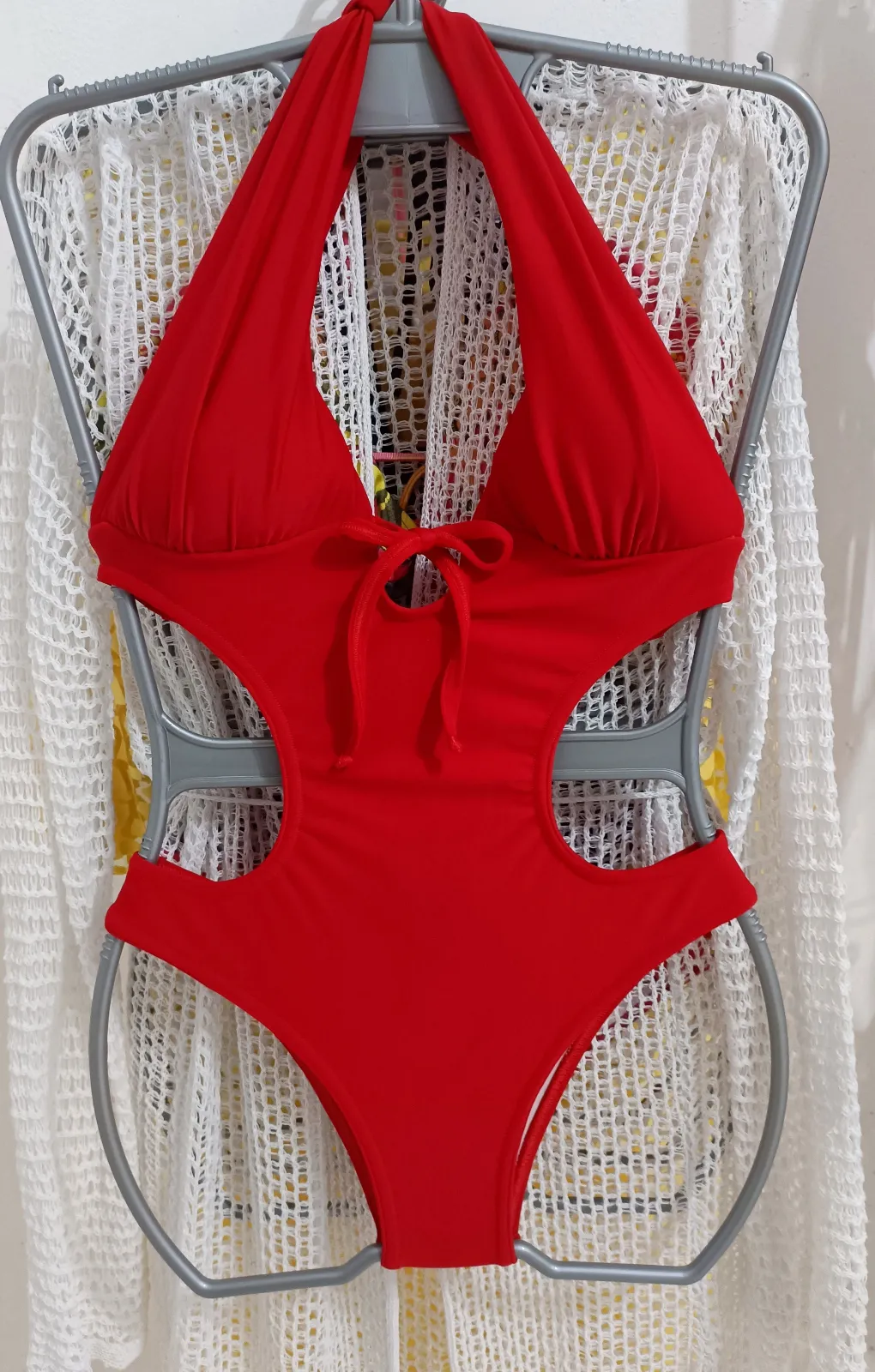 Este maiô em tecido elastano, totalmente forrado, oferece conforto e suporte com bojo integrado, realçando sua silhueta com um toque vibrante. O detalhe de amarração frontal adiciona charme e estilo únicos.