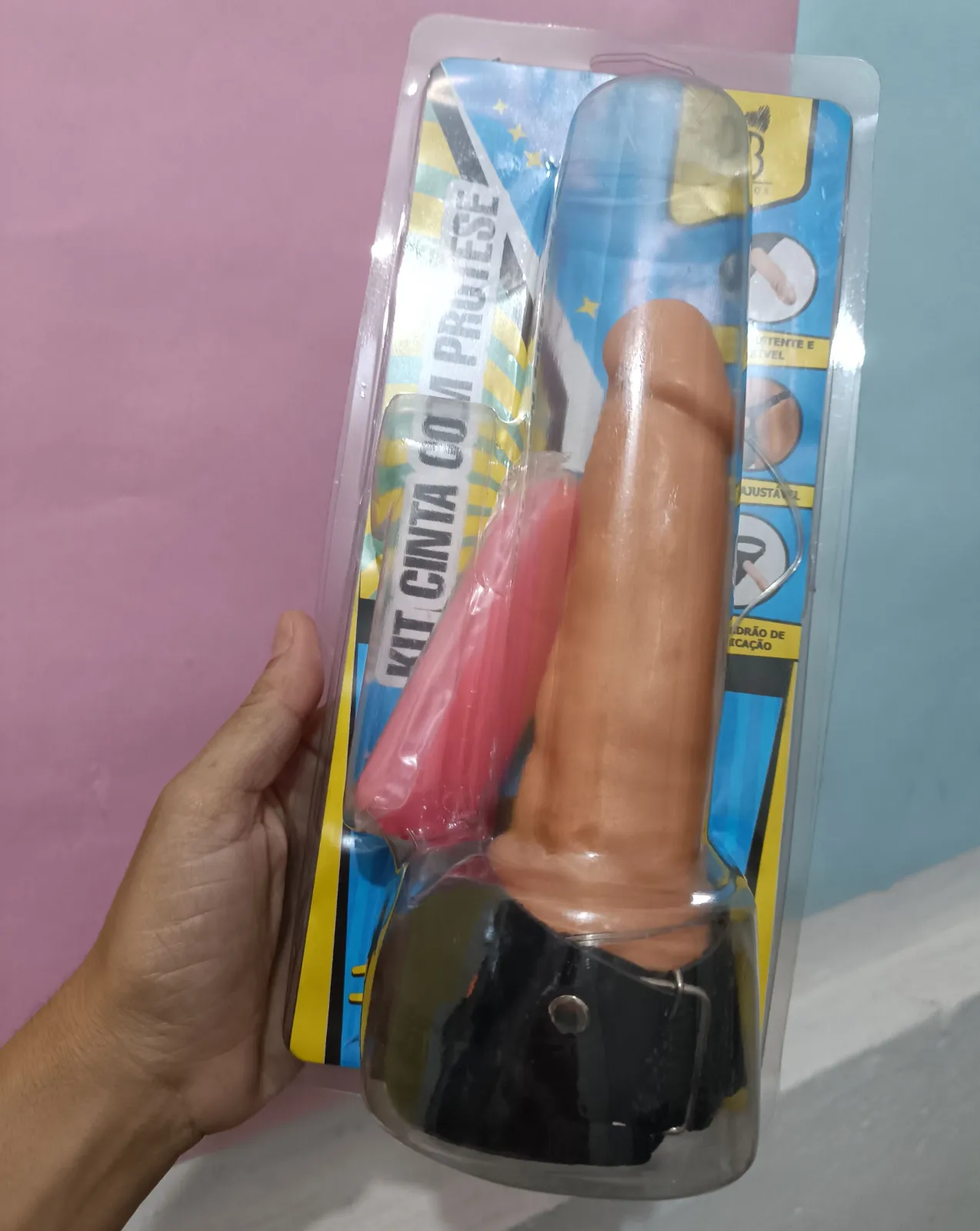 A prótese é colocada no furo da cinta para maior resistência, nesta são fixadas tiras para amarrar em material poliéster ajustáveis e reguláveis garantindo resistência além de possuírem tamanho ideal para seu travamento e uso correto do acessório.