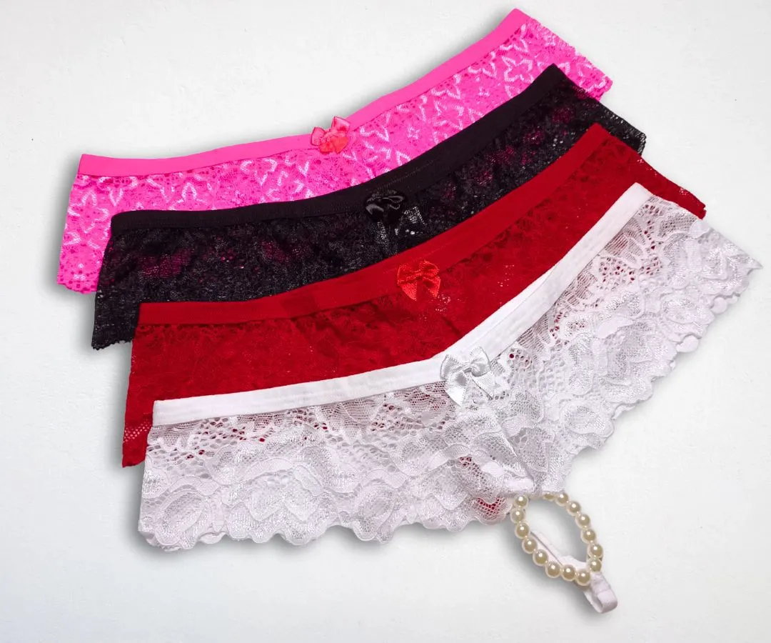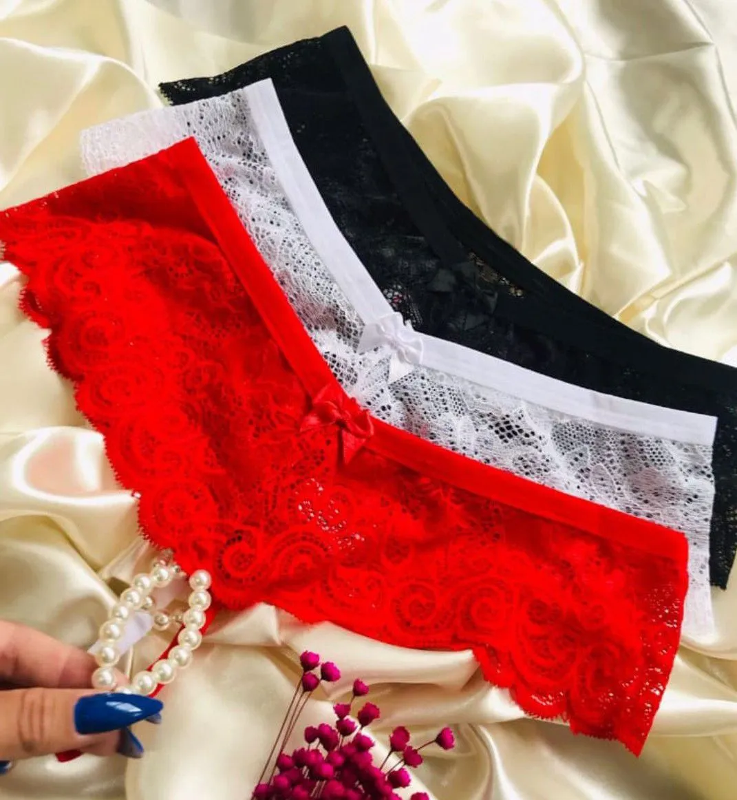 A frente em renda vazada oferece um toque provocante, enquanto o delicado lacinho adiciona um charme sutil. As laterais ajustáveis com fitas garantem que você possa adaptá-las perfeitamente ao seu corpo, proporcionando conforto e segurança.