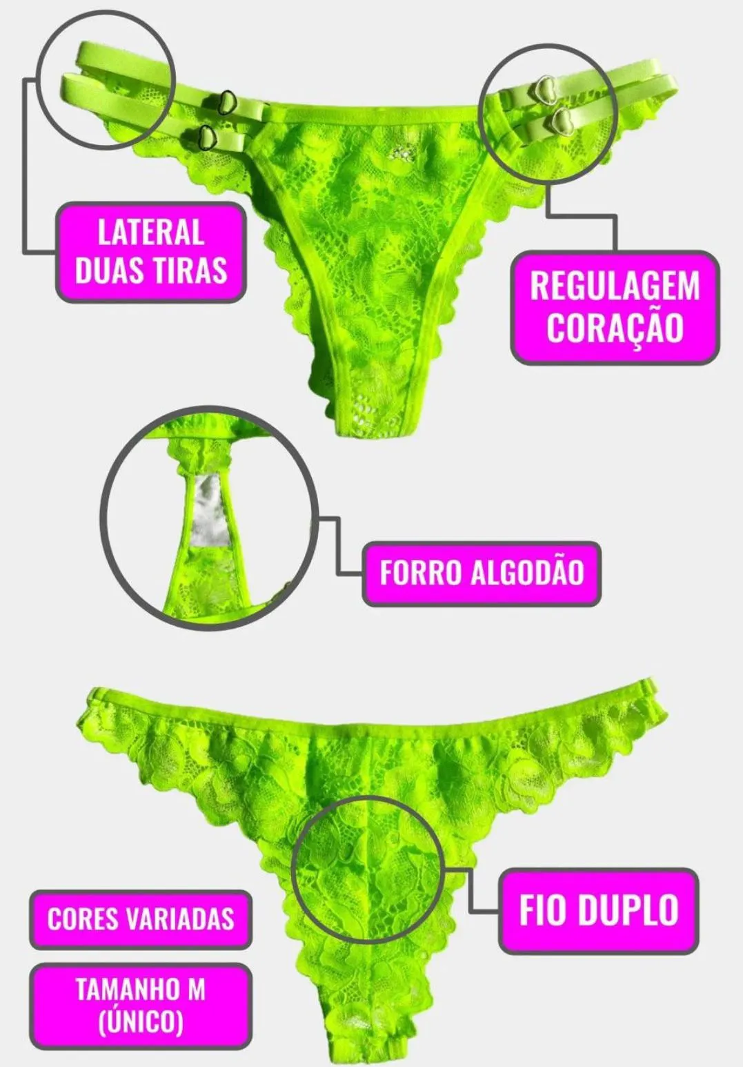 Calcinha em renda com dupla regulagem