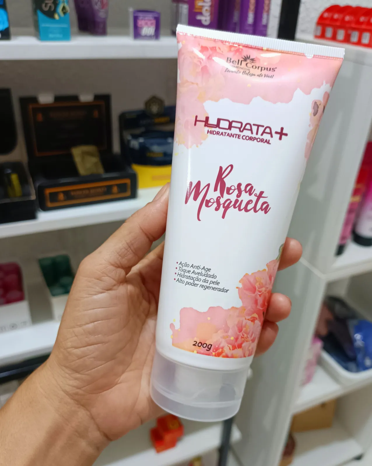 O Hidratante Rosa Mosqueta da Bell Corpus contém óleo de rosa mosqueta, que é rico em ácidos orgânicos e outras substâncias benéficas. Esse óleo possui um alto poder regenerativo, cicatrizante e emoliente, ajudando a reparar e nutrir a pele. O produto é eficaz na prevenção da formação de estrias, mantendo a pele super hidratada e com um toque aveludado.