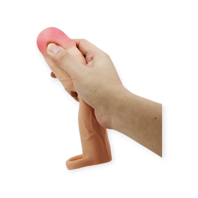 Capa peniana emborracha ultra macia e flexível, possui glande definida e uma textura realística de veias salientes ao longo do corpo,