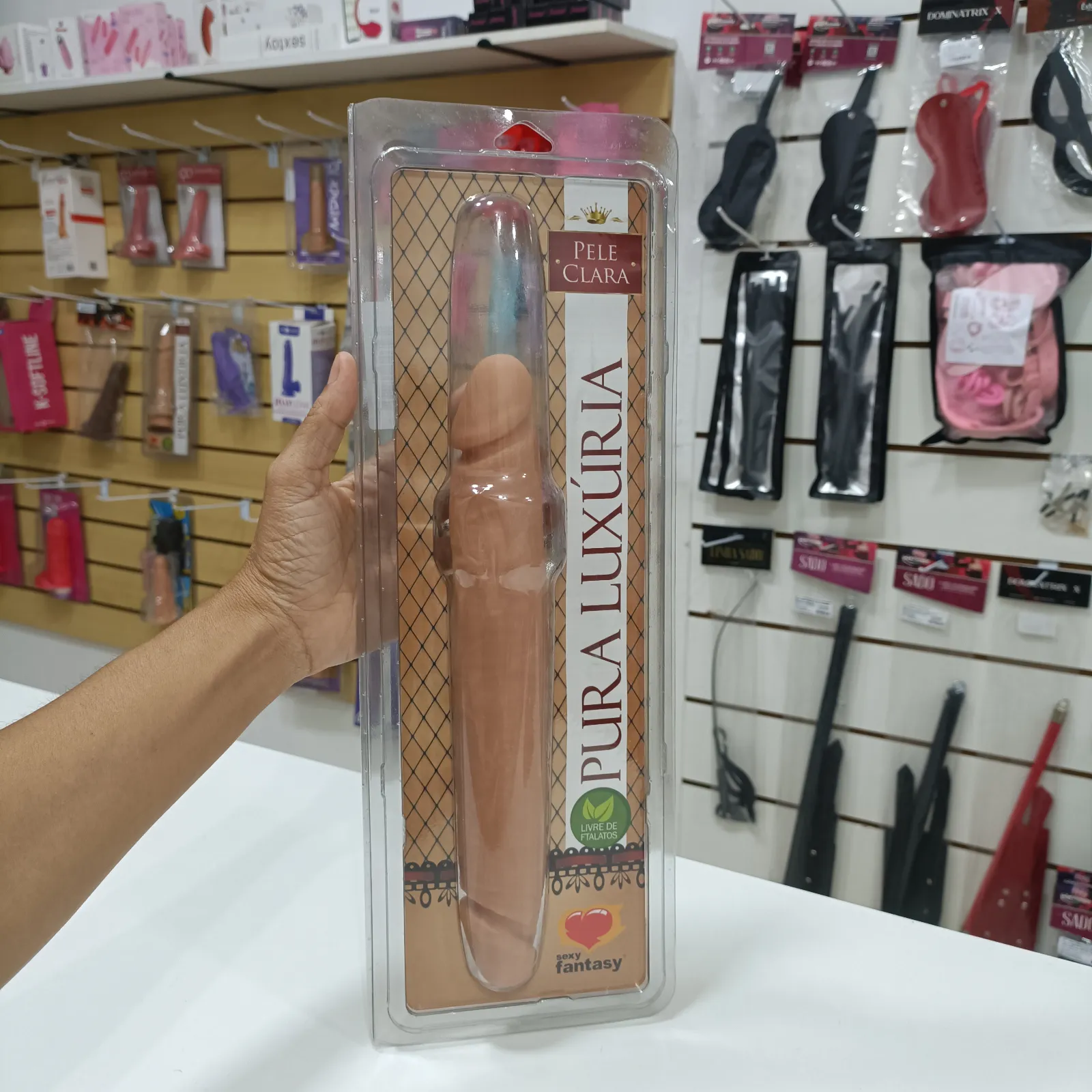 Da linha Pura Luxúria, a prótese tem formato de pênis de diâmetro com textura em veias e ponta dupla para penetração vaginal e anal pode ser usada para penetração simultânea entre parceiras (os). Super-realista, possui glande e relevos que assemelham as veias de um pênis real. Além de ser extremamente macia e flexível.