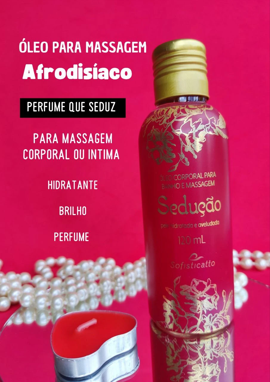O Óleo de Massagem Sedução da Sofisticatto é um óleo corporal multifuncional, ideal para massagens relaxantes e sensuais, com uma fragrância suave que promove envolvimento e bem-estar, deixando a pele hidratada, aveludada e com um toque agradável, podendo ser usado no banho ou em momentos íntimos a dois para intensificar a conexão. Ele desliza suavemente, prepara para preliminares e pode até criar uma leve sensação de aquecimento, sem deixar a pele pegajosa.